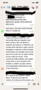 Trabalhadores relatam que os atrasos são recorrentes: “Todo mês é a mesma coisa. Temos contas e compromissos”, afirmam mensagens obtidas pelo Blog.