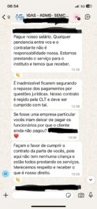 Segundo uma funcionária, “nosso contrato é regido pela CLT e deve ser cumprido. É inadmissível segurarem pagamentos por questões jurídicas.”