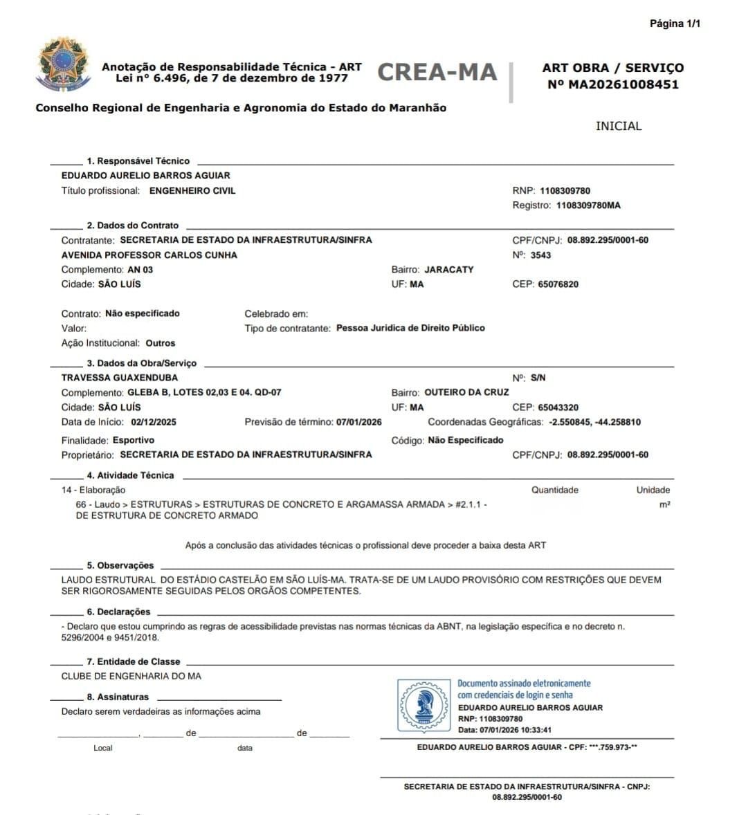 Esse trabalho evitou o risco de interdição do estádio e assegurou o cumprimento das normas técnicas exigidas para eventos esportivos de grande porte, reforçando a credibilidade institucional do Governo do Maranhão.